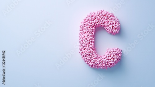 Pink Heart-Shaped Candy Letter C on a Soft Blue Background
