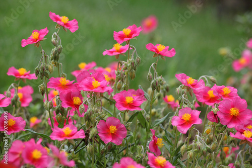 Pink Helianthemum rock rose ''Ben Ledi' in flower