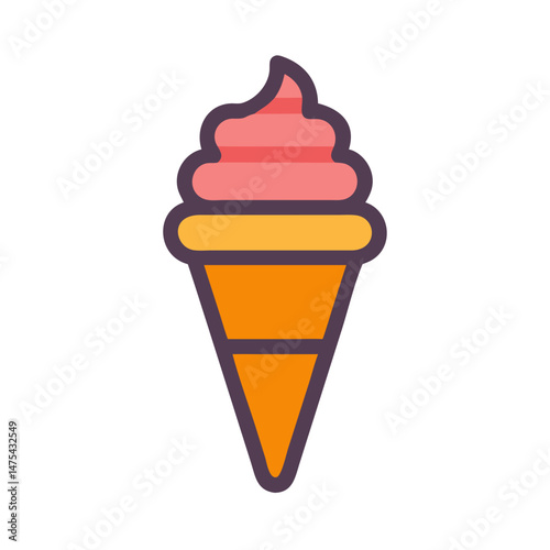 ice cream, cone, pink, orange, summer, dessert, food, sweet, treat, delicious, glacé, scoop, cream, isolated, cartoon, illustration, vector, design, graphic, art, icon, symbol, shape, tasty, sugar, deliciously, vanilla, strawberry, gelato, confectionery, snack, eat, cool