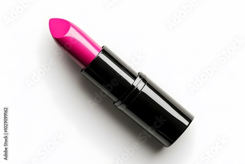 Pink Lipstick in Black Tube on White Background Beauty Makeup Cosmetics Fashion Prod