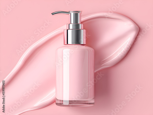 pink, lotion, bottle, cream, swirl, cosmetic, skincare, beauty, product, dispenser, pump, liquid, smooth, glossy, shiny, clean, hygiene, personal, care, health, wellness, feminine, gentle, soft, pastel, background, studio, light, shadow, texture, fluid