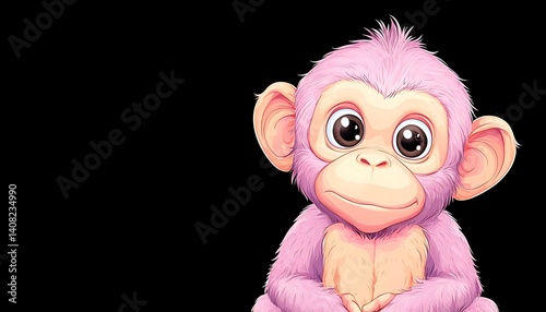 monkey, pink, animal, cute, cartoon, illustration, drawing, children, adorable, furry, baby, portrait, graphic, design, art, children, digital, image, animal, fluffy, sweet, innocent, nature, playful, happy, little, character, children, education, picture