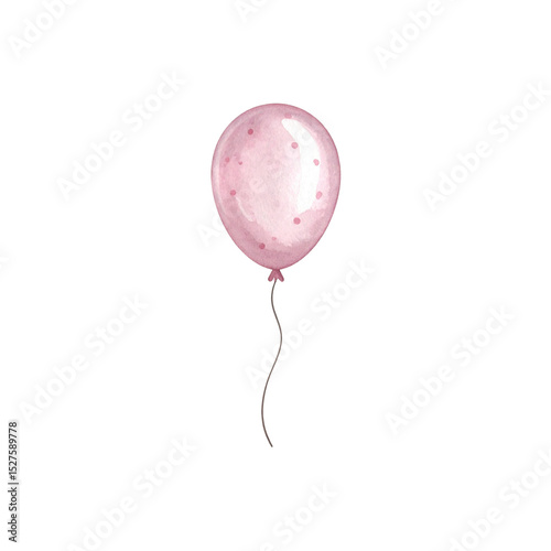 Pink party balloon with ribbon isolated on a white background, perfect for a fun birthday celebration decoration