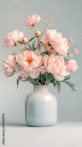 peony, floral arrangement, floral arrangement, bouquet, flower, pink flower, spring flower, summer flowers, wedding flowers, floral pattern, home decor, interior design, still life, photo, photo, image, nature, beauty, elegant, graceful, delicate, feminine, soft, gentle, romantic, love, fresh, vibrant, colourful, blossom, bloom, flower petals, leaf, green leaf, stem, white background, grey background