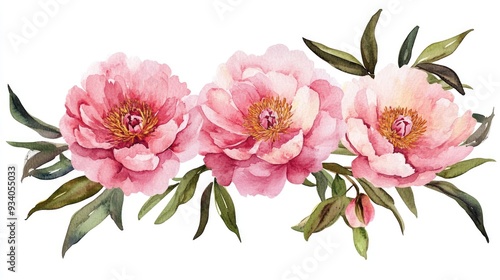 Pink Peonies Watercolor Illustration Botanical Art on Transparent Background Suitable for Greeting Cards and Wedding Decor