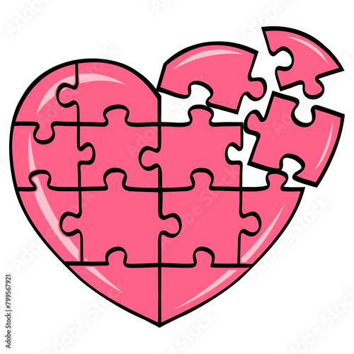 Pink Puzzle Heart Shaped Drawing Illustration