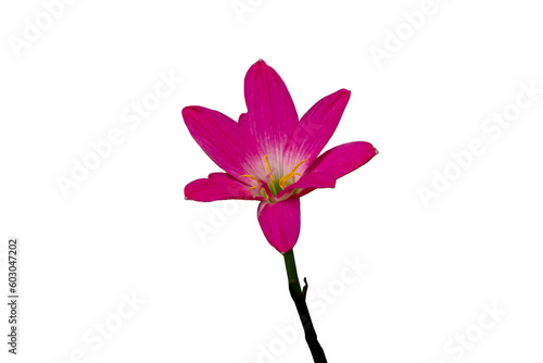 Pink rain lily plant blooming with pink and white petals
