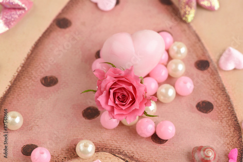 Pink Roses and Rose Soap Heart (Spa aromatherapy).