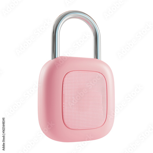 padlock, lock, security, safety, protection, access, digital, smart, technology, electronic, wireless, bluetooth, app, control, unlock, lockable, secure, datum, privacy, personal, home, office, gym, locker, baggage, suitcase, backpack, door, gate, storage, container, pink, pastel, modern, sleek, minimalist, object, isolated, transparent, background, studio, shot, clean, bright