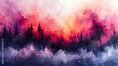 forest, sunset, fog, pink, digital, art, fantasy, tree, cloud, sky, nature, landscape, mystical, dreamy, aethereal, abstract, painting, background, texture, colours, vibrant, magic, wonderland, mysterious, enchanted, serene, calm, peaceful, spiritual, hope, beauty, inspiration, imagination, creative, artwork, illustration, design, graphic, image, picture, photo, print, wallpaper, canvas