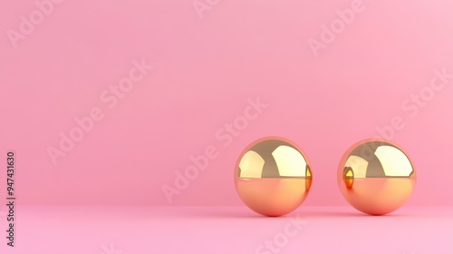 Pink surface featuring three golden spheres against a pink backdrop minimalist design 3D rendering