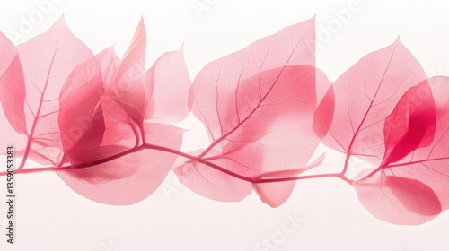 Pink transparent leaves on white