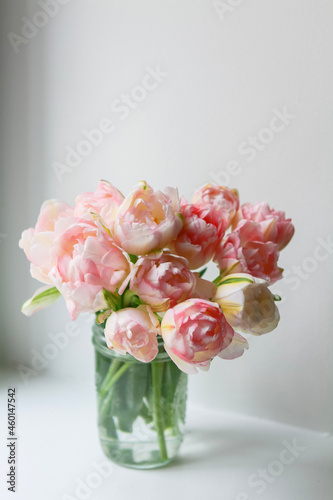 flower, bouquet, tulip, vase, pink, tulip, nature, flower, blossom, floral, beauty, love, bloom, bunch, gift, valentine, wedding, glasses, decoration, arrangement, leaf, plant, birthday, romance, spring, light pink