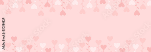 Pink Valentine's day banner with a frame of hearts on stems with leaves. Flat vector illustration