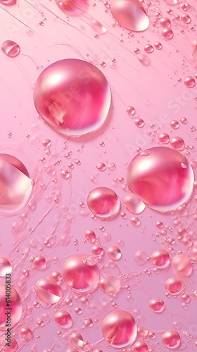 Pink water drops. AI generated art illustration.