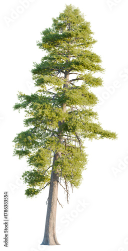 Pinus ponderosa tree, front view, cutout, transparent, isolate, Majestic evergreen pine tree with vibrant green needles and textured bark