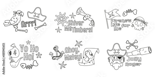 pirate, outline, cartoon, label, skull, character, parrot, hat, map, ship, collection, element, set, adventure, flag, sticker, captain, anchor, children, cut-out, gold, marin, party, shark, design element, gun, octopus, crab, symbol, treasure map, costume, money, star, pipe, smoking, cap, coin, dagger, island, boat, girl, wheel, flat