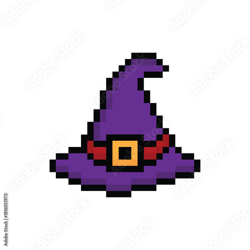 pixel 8 bit witch hat vector icon art for computer game