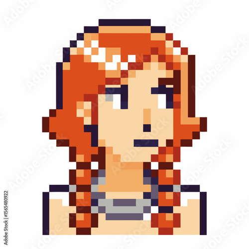 Pixel art woman with red hair and braids, neutral expression, retro game avatar or character, isolated on white