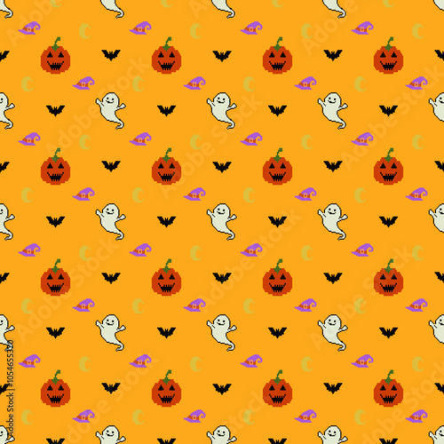 Pixel Halloween Pumpkin Ghost Bat Pattern Cute Pixel Halloween Pattern Happy Halloween Pixel Art Pixel Halloween Wallpaper