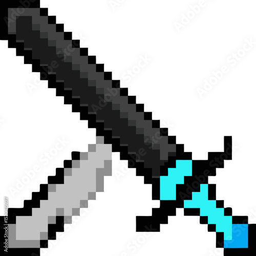 sword, pixel, pixelated, art, game, retro, weapon, blade, handle, sheath, black, blue, grey, silver, design, graphic, element, digital, vintage, old, school, style, gaming, video, computer, fantasy, mediaeval, warrior, knight, fight, battle, combat, sharp, edge, point, hilt, guard, grip
