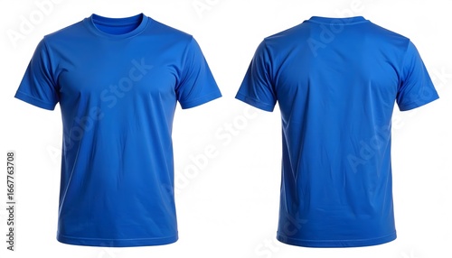 t-shirt, blue, casual attire, clothing, fashion, apparel, short sleeve, blank, unisex, basic, garment, textile, comfortable, everyday, front view, backview, casual clothes, leisure, outerwear, top, clothes rack, movement, fit, style, modern, versatile, lightweight, simple, clean