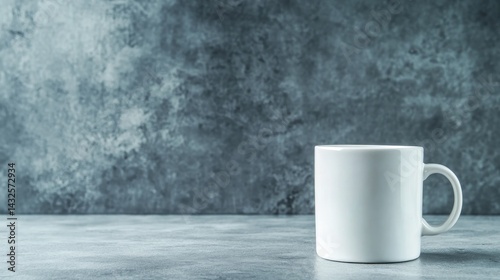 Plain white ceramic mug rests on a softly lit surface, highlighting its elegant design with gentle shadows and providing ample copy space on the right side