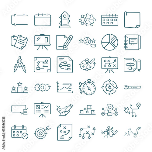 Planning Outline Icon Set | Business Strategy, Schedule, Task Management, Productivity & Goal Setting Vector Icons