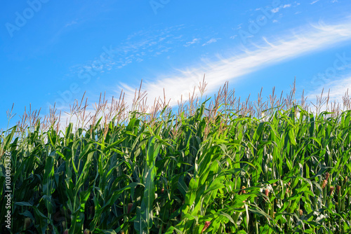 Plantación de maíz y nube en el cielo