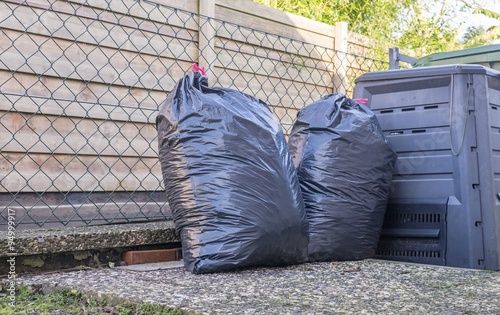 full, grey, plastic, rubbish, garbage, bin, large, big, bag, bag, trash, waste, reusing, recycling, disposal, disposable, environment, denied, sack, sack, household, garden