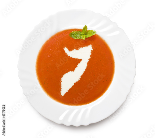 Plate tomato soup with cream in the shape of Somalia.(series)