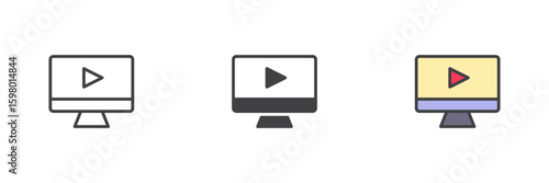 icon, line, outline, solid, glyphs, set, pack, symbol, logotype, screen, display, media, monitor, video, play, interface, clip, illustration, vector, filled, colours, style