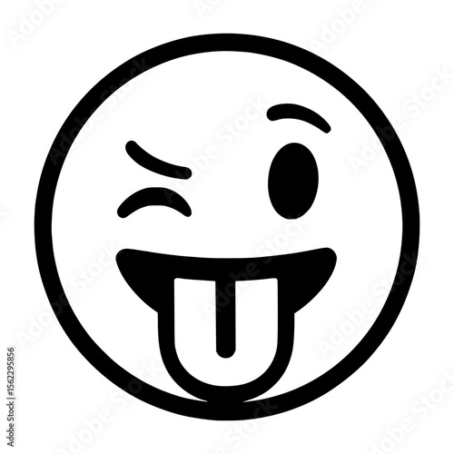 Playful black and white winking emoji with tongue sticking out