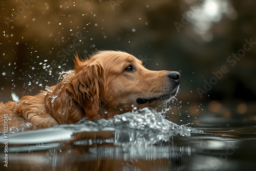 golden retriever, swimming, dog, splash, wet, water, canino, animal, pet, playful, active, fun, motion, action, gold, retriever, breed, water sport, energetic