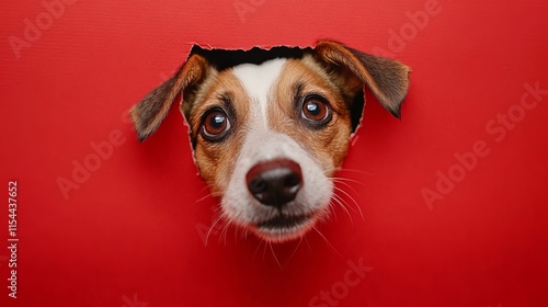 Playful Jack Russell Terrier Licking Nose with Red Cardboard Background