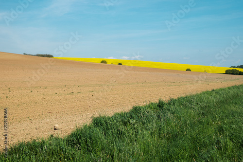 plow land and yellow field