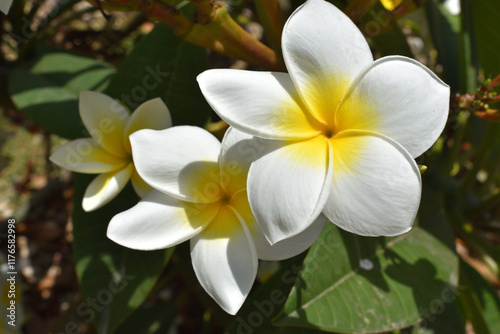 Plumeria Alba flowers blooming in Tenerife, Canary Islands