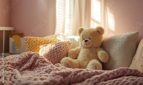 toy, bear, home, childhood, teddy, teddy bear, cute, bedchamber, pillow, bed, white, baby, room, indoor, background, comfortable, nobody, little, interior, decoration, pink, soft, sleep, children, lifestyle, happy, play, furniture, gift, plush, blanket, vintage, children, apartment, object, design, holiday, love, cosy, small, brown, morning, relax, day, sofa, softness, tenderness, enjoyment, lonely