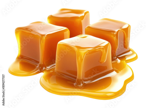 transparent, background, dripping, isolated, caramel, dessert, melting, texture, glossy, sticky, cube, sauce, sweet, three, treat, white, down, food, side, view