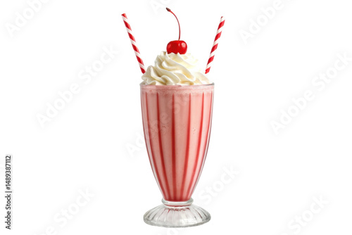PNG Classic strawberry milkshake with whipped cream and cherry garnish in tall glass