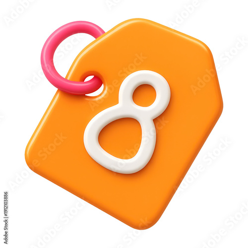tags, modern, texture, illustration, background, aesthetic, colourful, shadow, icon, minimal, vibrant, orange, pink, toy, brand, number, transparent, plastic, playful, design, glossy, object, render, white, text, playfulness, lighting, simple, studio, symbol, clean, ring, centered, tactile, smooth, price tag, isolated, comfort, price, style, bold, fun, 8, sense, rattle