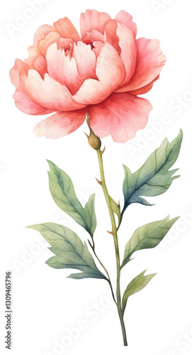 PNG Cute watercolor illustration of a Peony flower minimal plant peony rose.