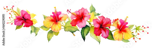 floral pattern, inflorescence, many-coloured, vibrant color, flower head, studio shot, transparent, creativity, watercolor, detailing, floristry, fragility, freshness, panoramic, realistic, clip art, closeup, graphic, hibiscus, isolated, blossom, cut-out, pattern, primary, border, bright, colours, flower, growth, nature, pollen, simple, yellow, plant, print, scale, white, leaf, pink, art