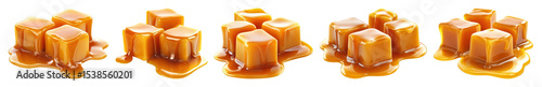 transparent, background, collection, dripping, isolated, caramel, dessert, element, piece, sticky, candy, cube, mixed, photo, sweet, treat, set