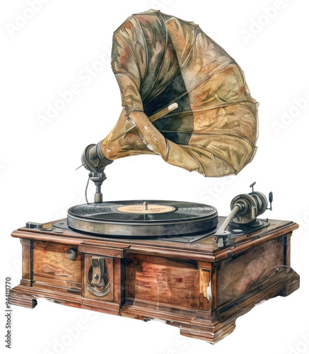 PNG Watercolor dark academia record player person adult human.