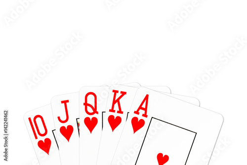 poker hand royal flush in hearts isolated on white background