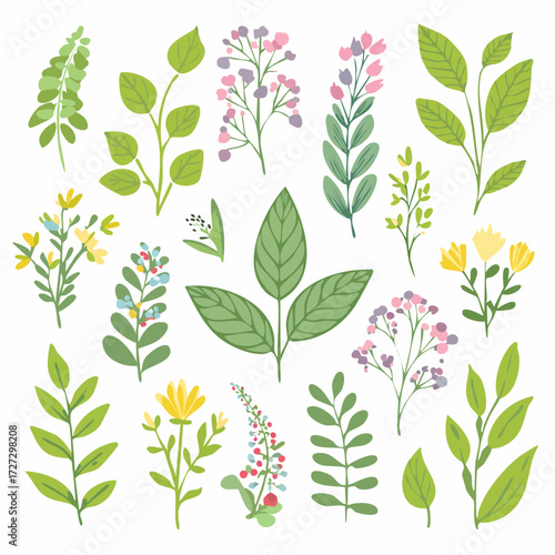 Pola mulus dengan daun dan cabang Latar belakang bunga dengan berbagai dedaunan dan tanaman hijau 4