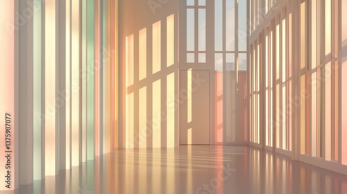 Polarized light interaction through filters modern architecture space digital art indoor environment abstract viewpoint