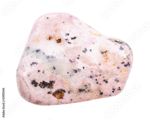polished Rhodochrosite gemstone isolated on white