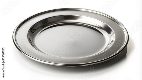 plate, silver, empty, white, background, dinner, lunch, meal, food, metallic, shiny, polished, clean, tableware, serving, dish, round, circle, elegant, simple, minimalism, luxury, catering, eatery, home, kitchen, dining, setting, preparation, hunger